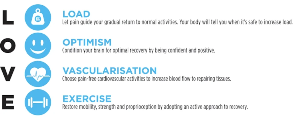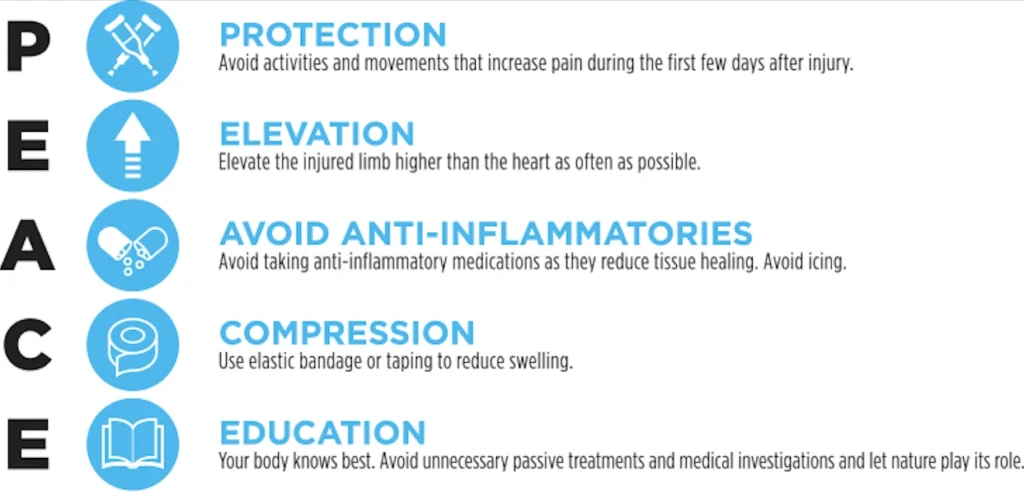 We posit that two new acronyms can optimize recovery. Our acronyms encompass the rehabilitation continuum from immediate care (PEACE) to subsequent management (LOVE). PEACE & LOVE underscores the importance of educating patients and addressing psychosocial factors to enhance recovery. In addition, while anti-inflammatories show benefits on pain and function, our acronyms flag their potentially harmful effects on optimal tissue repair. We suggest that they may not be included in the standard management of soft tissue injuries.