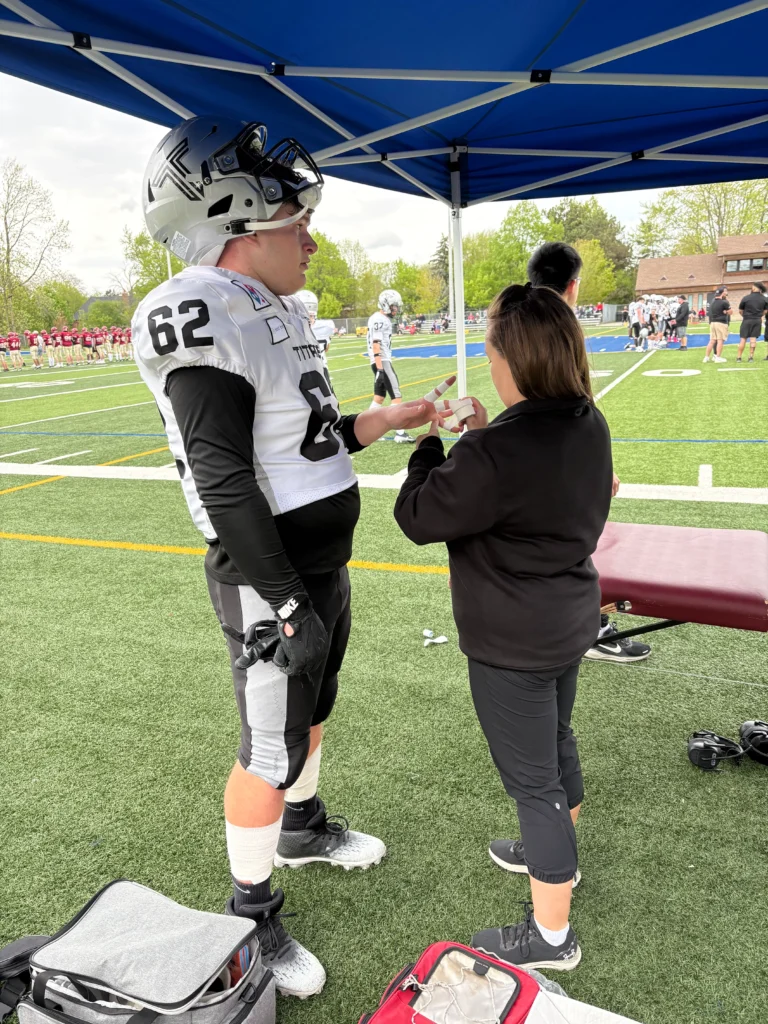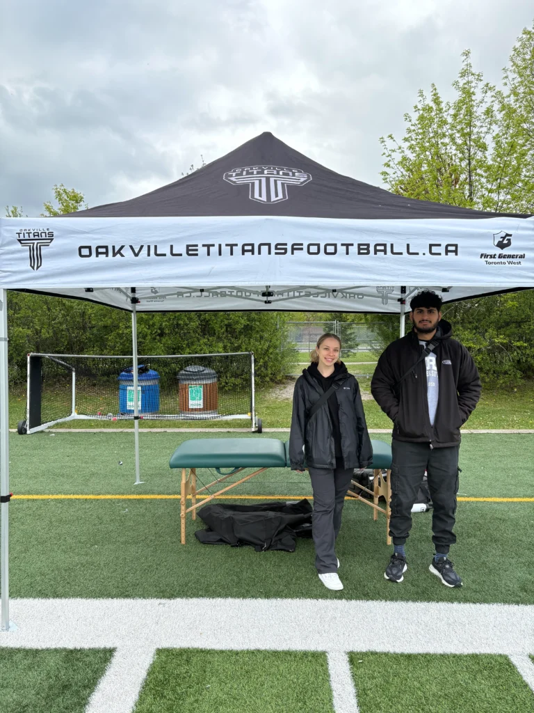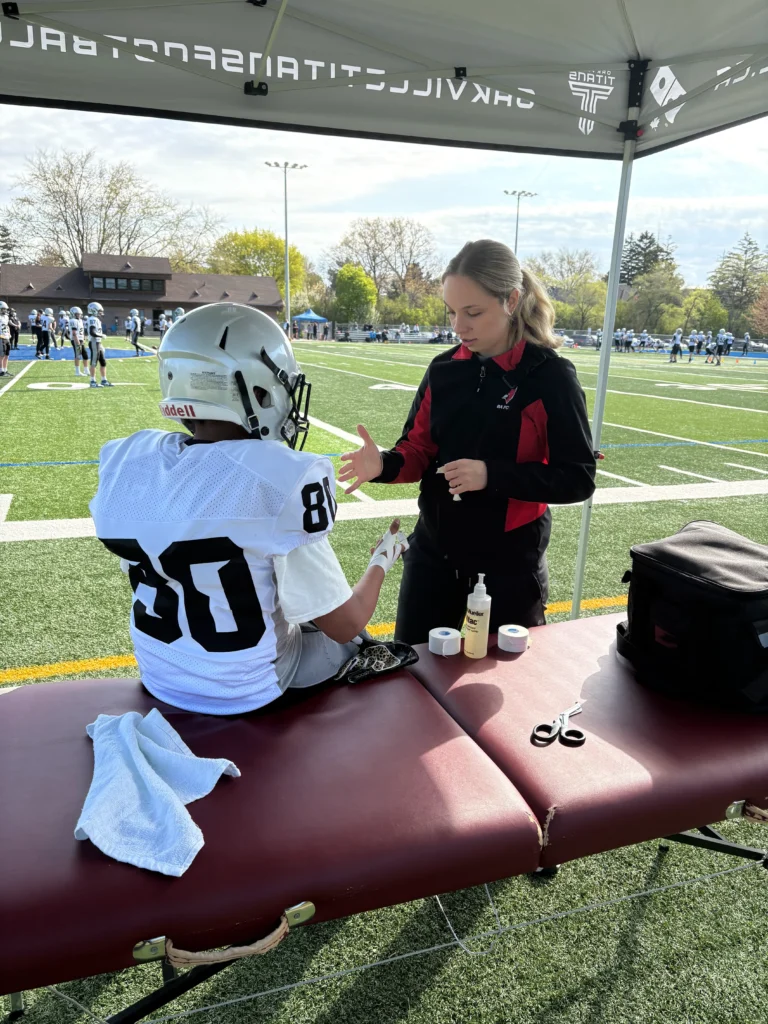 We’re excited to be back this summer partnering with our local football team, the Oakville Titans. As part of our ongoing commitment to hands-on learning, we’re supervising a group of student trainers from York University. Check out some behind-the-scenes photos of their work in action!